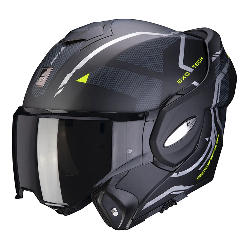 EXO-Tech non vuole essere una semplice alternativa a ciò che attualmente il mercato offre in ambito caschi modulari flip-back. Venduto con visiera trasparente. Ciò che lo rende unico è il suo design full-face unico, l’ampiezza della visibilità della visiera predisposta per il Pinlock, le ridotte dimensioni della calotta, l’ergonomicita’ del meccanismo mentoniera e la presa aria calotta apribile tramite un semplice tocco. Questo casco polivalente possiede un rapporto qualità- prezzo in grado di soddisfare tutte le esigenze che il mercato odierno richiede. EXO TECH è un casco che si differenzia sul mercato sia per le sue caratteristiche estetiche sia per le caratteristiche tecniche e di confort che potrete apprezzare durante l’uso.